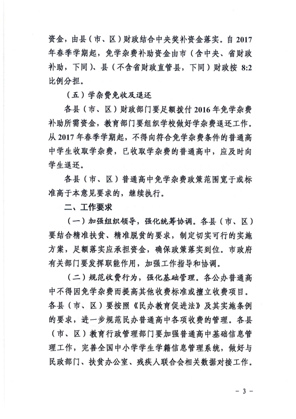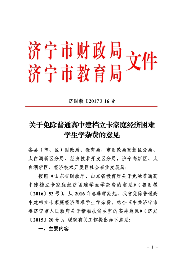 關于免除普通高中建檔立卡家庭經濟困難 學生學雜費的意見