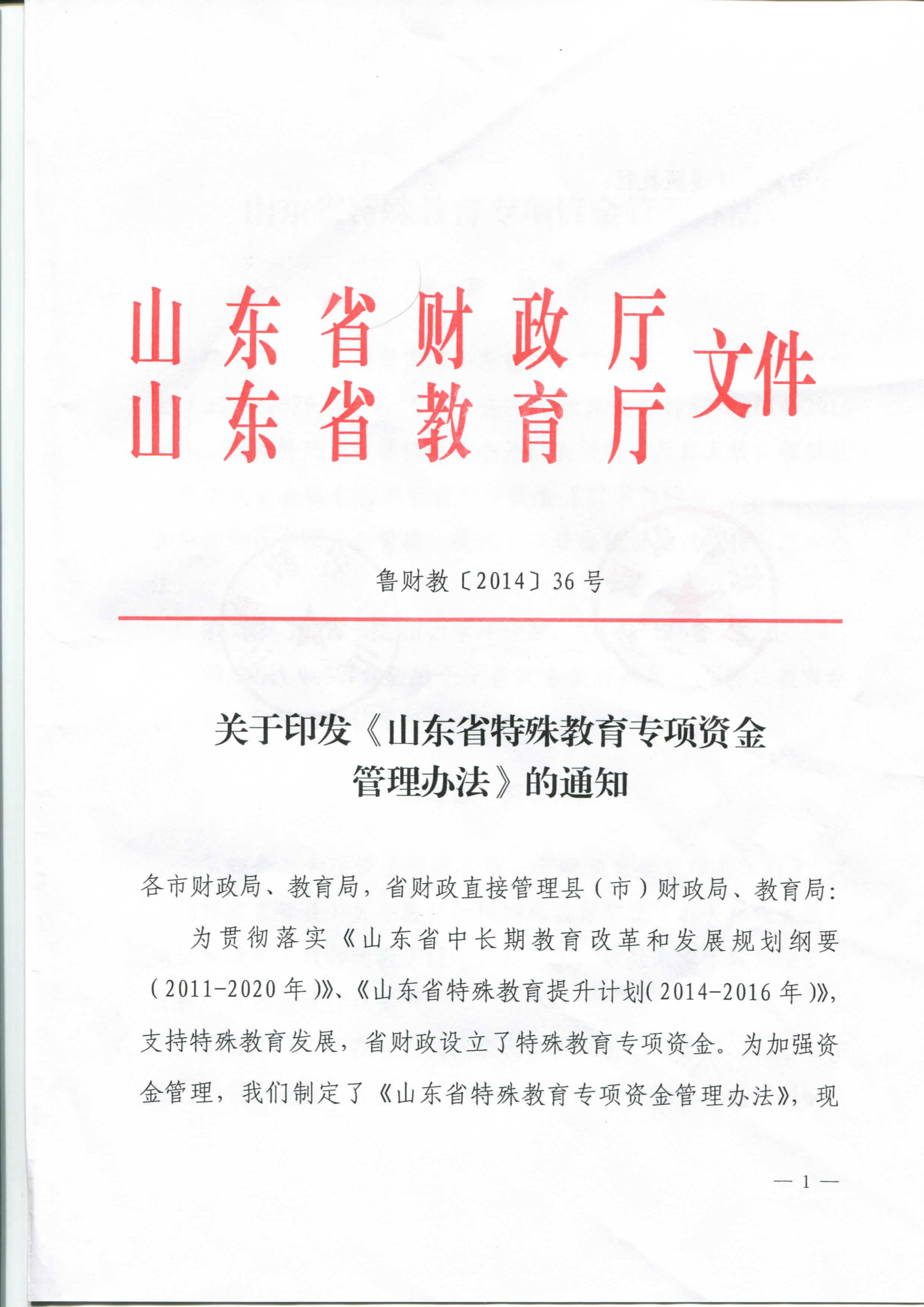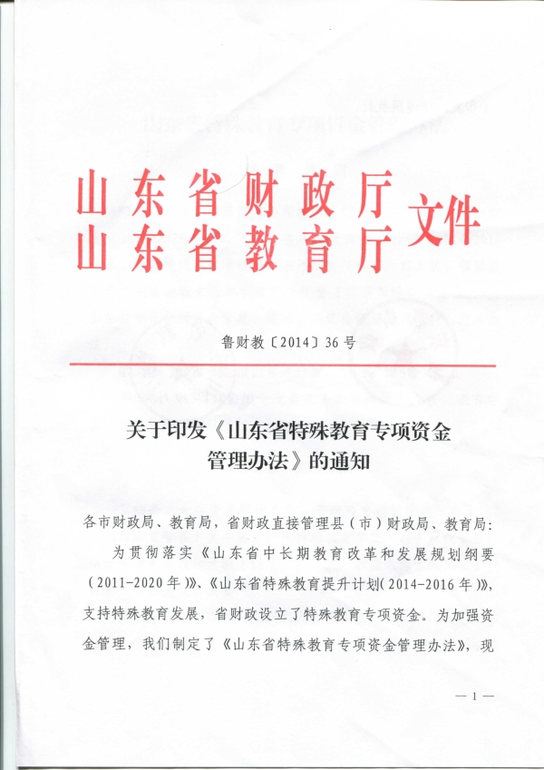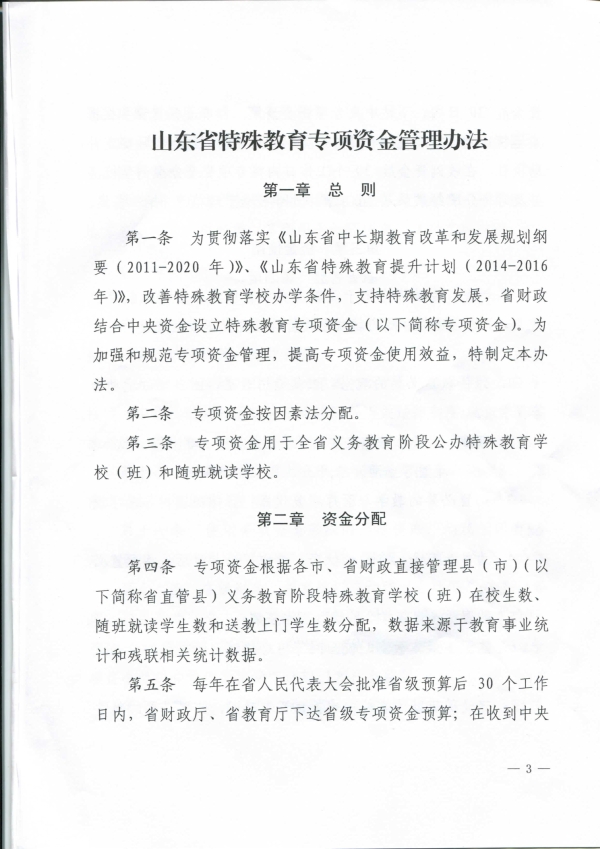 關于印發《山東省特殊教育專項資金管理辦法》的通知