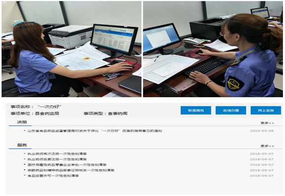 二、做好“三個加法”,推動服務更優。一是實施“互聯網+服務”。在食藥監系統內部,構建三級微信網絡服務平臺。分別在縣局、鄉鎮監管所(分局),村(社區)層面,建立“食藥服務”“食品監管服務”、“藥械監管服務”、“學校(幼兒園)食堂監管服務”等微信群。同時,依托縣O2O便民服務平臺,廣泛征集辦理群眾、企業訴求,強化“線上互動、線下行動”。著力探索推進“全程網辦”及“不見面審批模式”,積極推廣應用省食藥監局各類審批業務系統,推進技術標準統一和數據整合,讓信息多跑路,群眾少跑腿。二是實施“黨建+服務”。強化黨建引領。選配三名政治堅定、業務精通、作風優良的公務員到行政審批窗口工作,實行“佩黨徽、亮身份”,開展“黨員先鋒崗”創建。聚焦企業和群眾在辦證方面的痛點、堵點、難點,開展“黨員志愿服務”活動。針對群眾反映辦理《食品經營許可證》網上申報操作復雜、不會使用計算機等問題,組織熟悉業務的黨員主動上門服務,對群眾進行“一對一”全程指導,靠上幫助群眾辦理相關手續,打通服務群眾“最后一公里”。三是實施“創新+服務”。著力創新服務方式、手段。針對群眾、企業實際情況及多樣化、差異化需求,實施代辦、陪辦、助辦、上門辦。對殘疾人、失業人員、困難群眾等特殊群體或者重大項目,開通綠色通道“特殊辦”。
