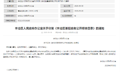 為深入貫徹落實國家、省、市有關工作部署,全面推進基層政務公開標準化規范化工作,青島市李滄區按照上級文件要求,圍繞涉及本區職能權限的16個領域,遵循“應公開、盡公開”的原則,全面梳理公開事項,細化公開內容,在本市率先編制完成了基層政務公開標準目錄。
