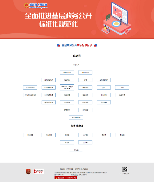 根據省市《關于全面推進基層政務公開標準化規范化工作的實施方案》通知要求,臨沂市臨沭縣科學部署謀劃,全面推進縣鄉兩級政務公開標準化規范化工作。截至目前,全縣縣級26個領域及9個鎮街標準目錄全部編制完成,并通過縣政府門戶網站向社會公開。