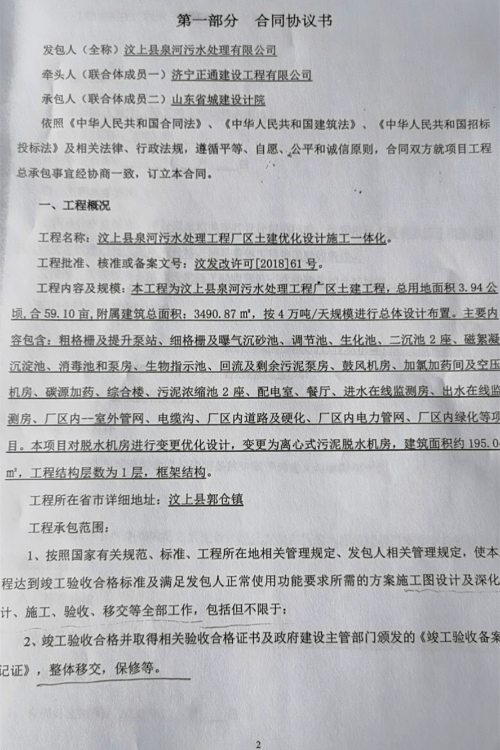 汶上縣泉河污水處理工程施工有關信息