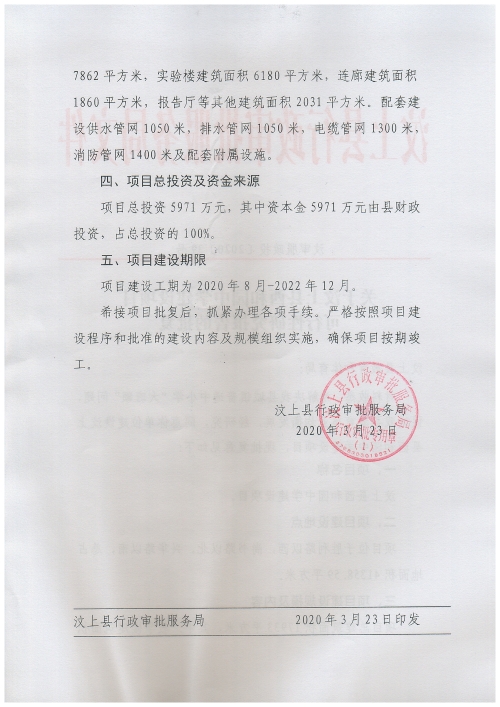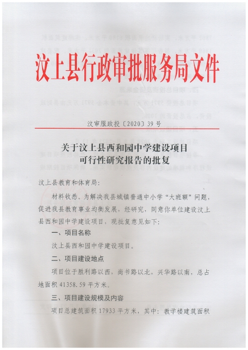 關于汶上縣西和園中學建設項目可行性研究報告的批復