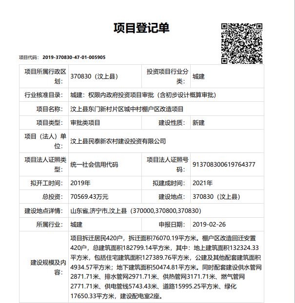 汶上縣東門新村片區(qū)城中村棚戶區(qū)改造項(xiàng)目立項(xiàng)批復(fù)信息