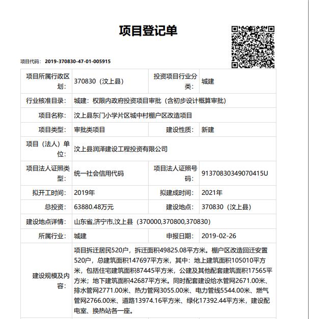 汶上縣東門(mén)小學(xué)片區(qū)城中村棚戶(hù)區(qū)改造項(xiàng)目立項(xiàng)批復(fù)信息