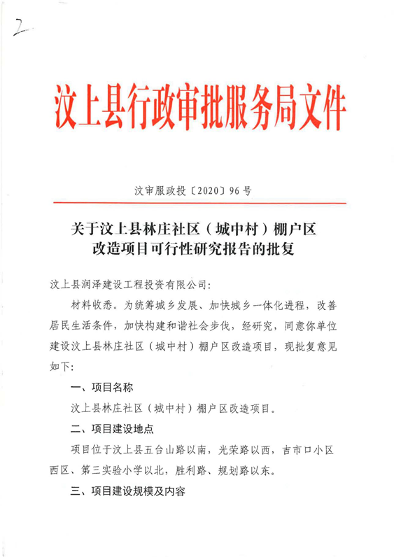 汶上縣林莊社區(qū)(城中村)棚戶區(qū)改造項目立項批復(fù)信息