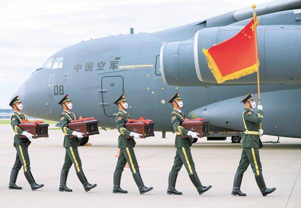 9月2日,第八批在韓中國人民志愿軍烈士遺骸由我空軍專機護送從韓國接回遼寧沈陽,109位志愿軍烈士英靈及1226件相關遺物,回到了祖國懷抱。從2014年至今,我國已先后八次迎接825位在韓志愿軍烈士遺骸回國。