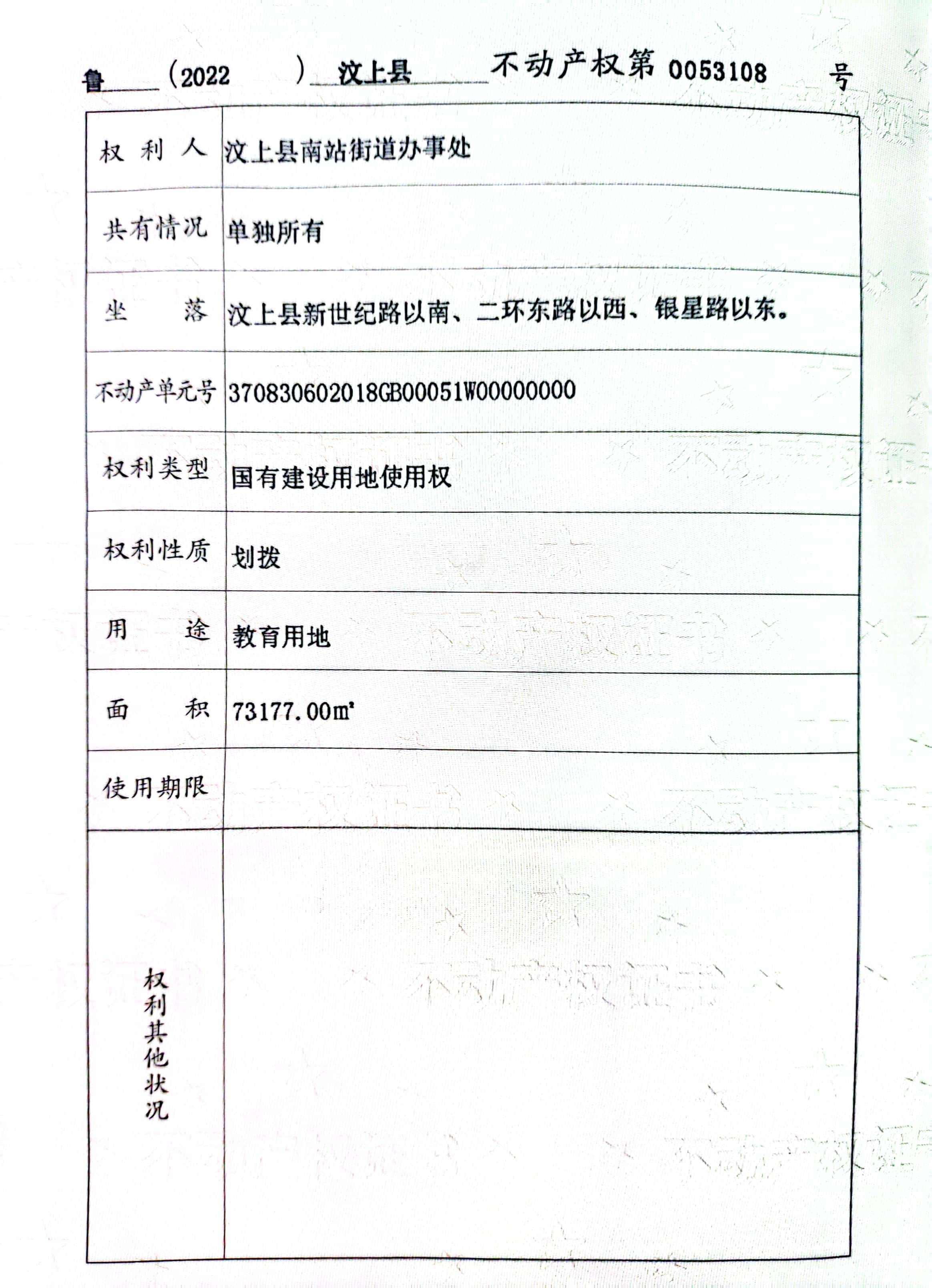 汶上縣東南片區(qū)九年一貫制學(xué)校土地使用信息