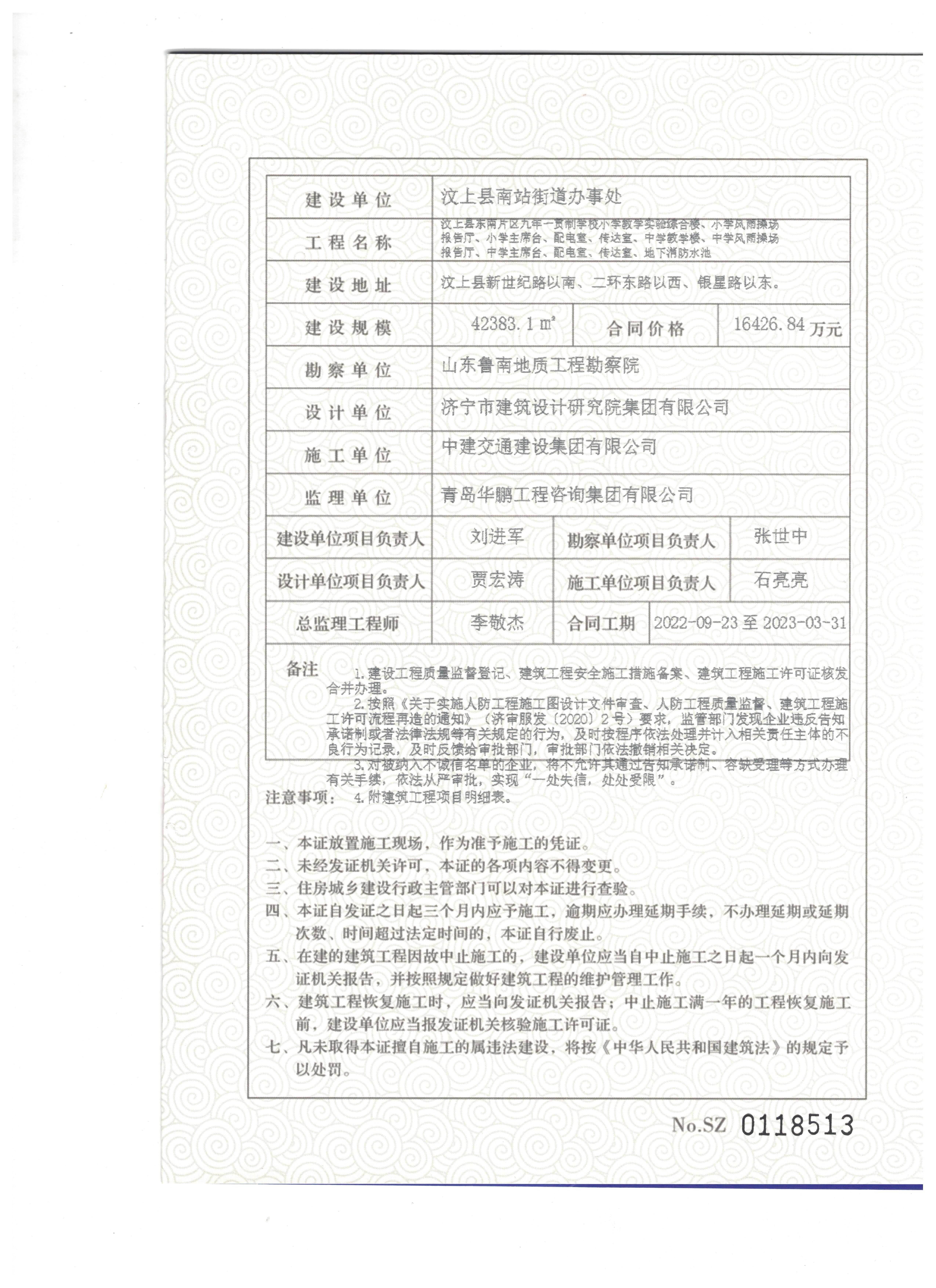 汶上縣東南片區(qū)九年一貫制學(xué)校施工信息