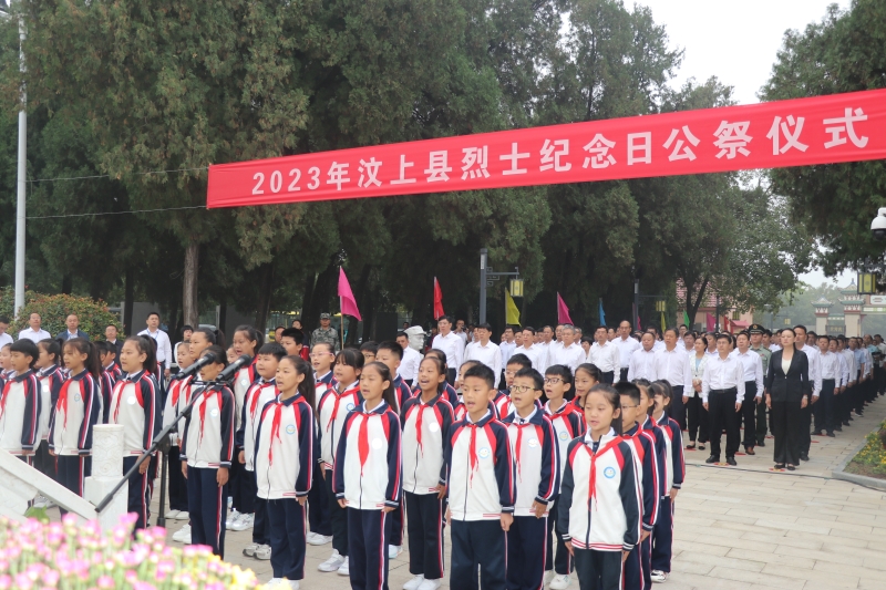 天地英雄氣,千秋尚凜然。2023年9月30日是我國第10個烈士紀念日,為深切緬懷英烈的豐功偉績,賡續紅色血脈,9月30日上午,汶上縣在烈士陵園舉行國家烈士紀念日公祭儀式。中共汶上縣委書記高永干,縣委副書記、縣長李強等縣幾大班子領導同志,各鄉鎮(街道)黨(工)委書記,縣直有關部門、單位主要負責同志,駐汶官兵、消防指戰員、烈屬代表、退役軍人代表、學校師生代表、志愿者及各界群眾約300人參加儀式。