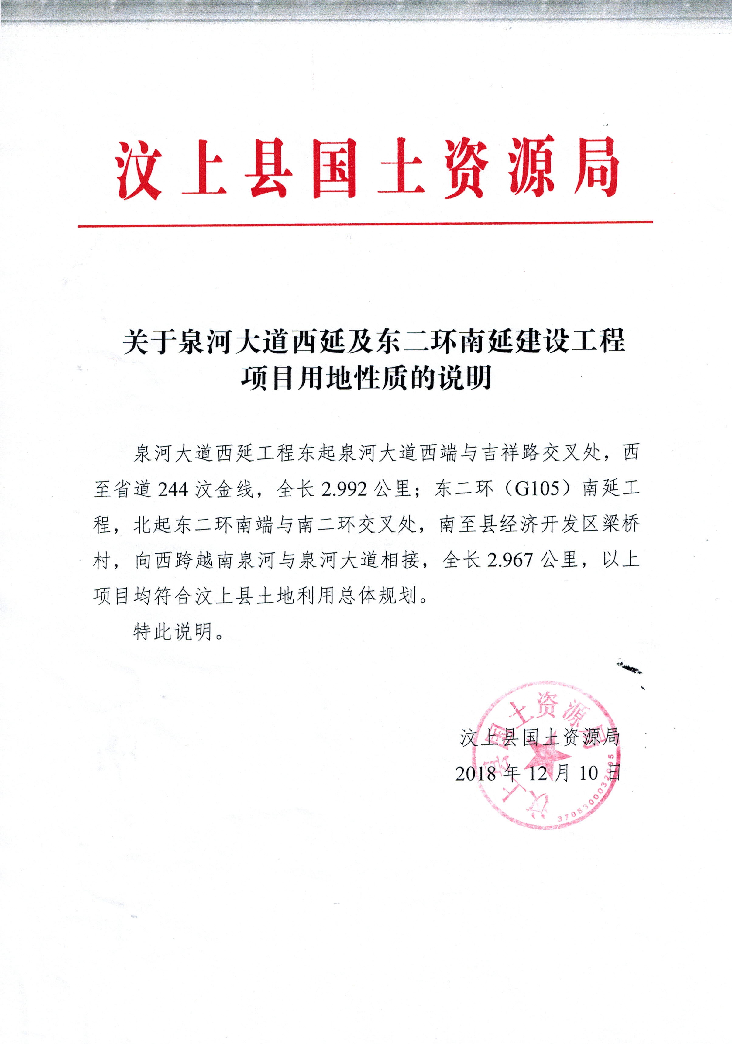 汶上縣泉河大道東延建設(shè)工程PPP項目征收土地信息