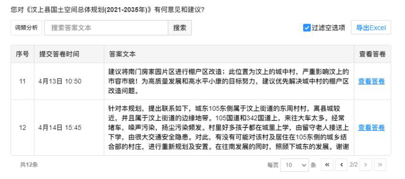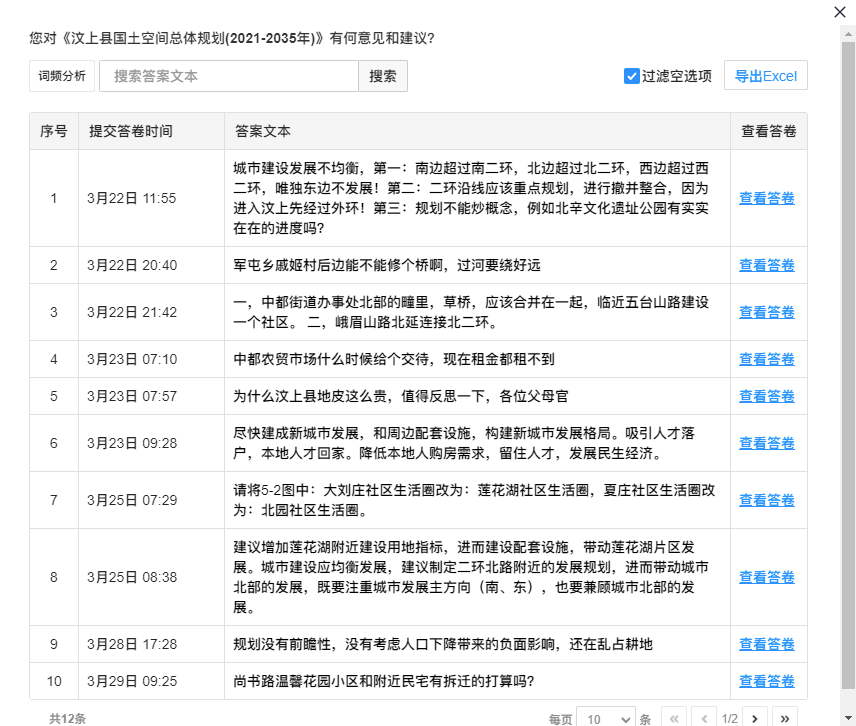 截止2023年4月15日,共收到12條意見。規(guī)劃對12條意見均進行逐條答復。