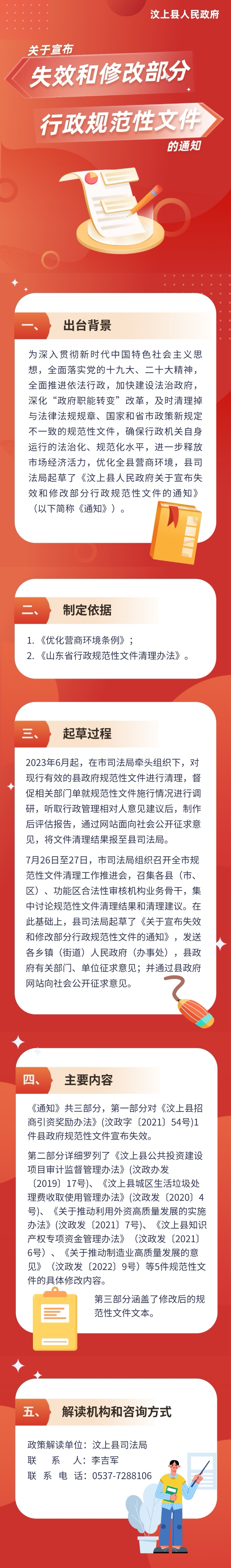 汶上縣人民政府關于宣布失效和修改部分行政規范性文件的通知