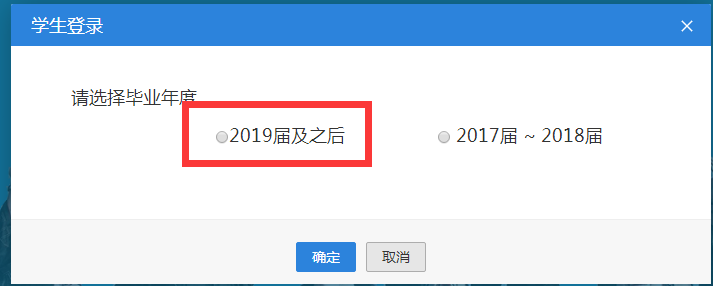 2、進(jìn)入“學(xué)生登錄”通道,選擇相應(yīng)的畢業(yè)年度“2019屆及之后”,填寫(xiě)賬號(hào)密碼之后登錄。