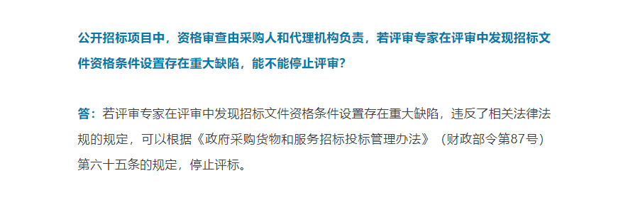 【一圖看懂】資格審查由采購人負責,若評審專家發現資格條件有問題,能不能停止評審?