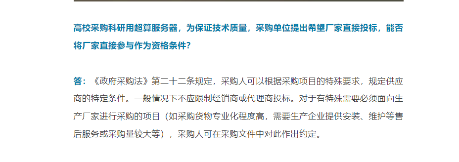 【一圖看懂】政府采購能否將生產廠家直接投標作為資格條件?