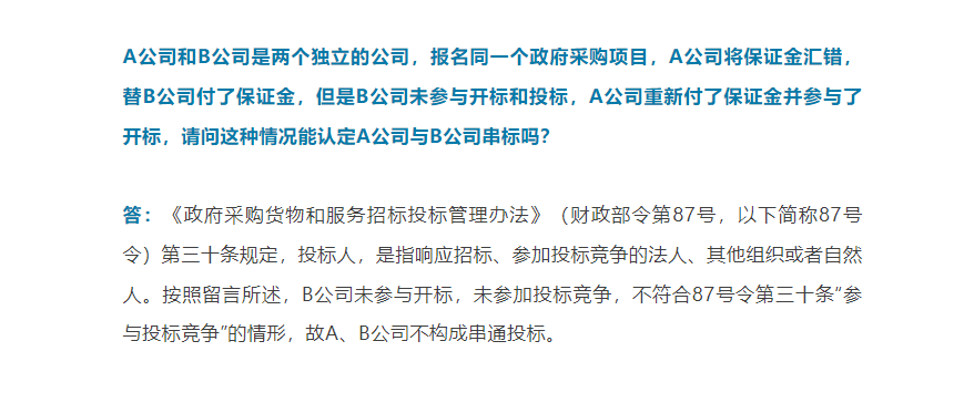 【一圖看懂】A公司替B公司付了保證金,但B公司未參與投標,屬于串標嗎?