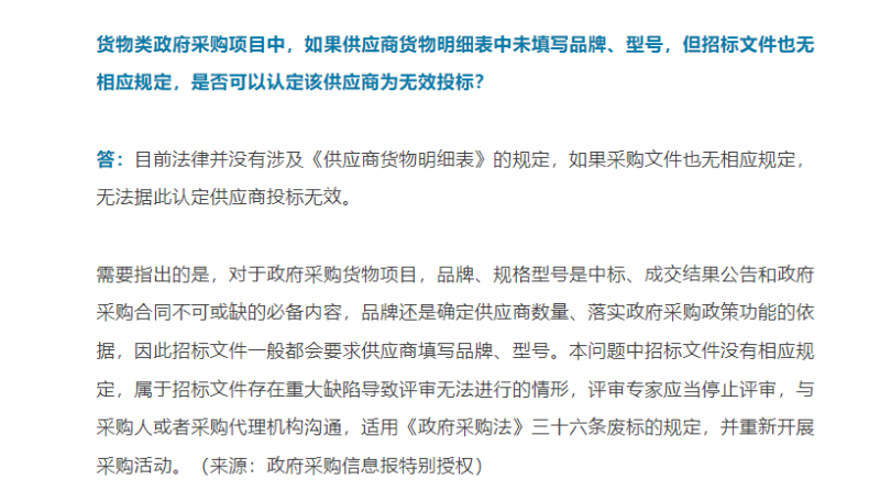 【一圖看懂】投標人未提供品牌型號,招標文件也沒要求,要廢標嗎?