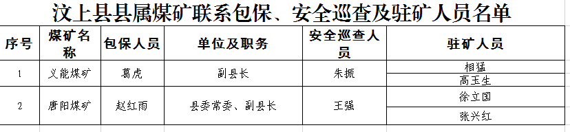 汶上縣縣屬煤礦聯系包保、安全巡查及駐礦人員名單
