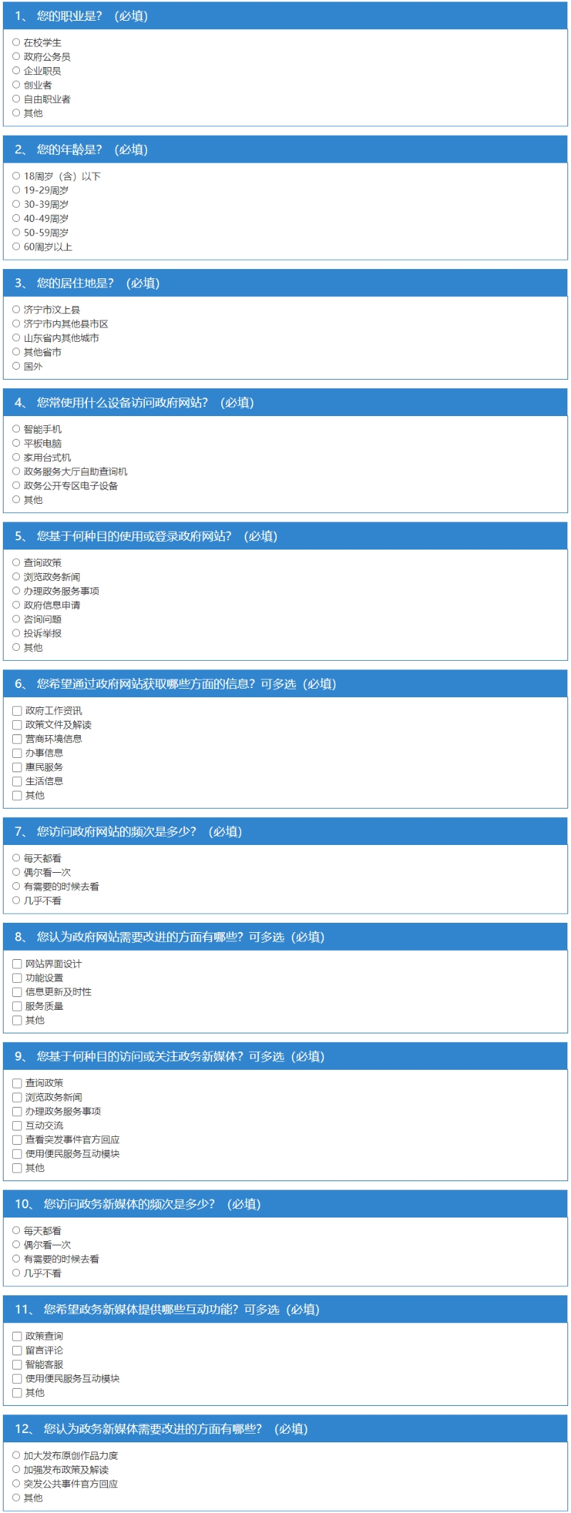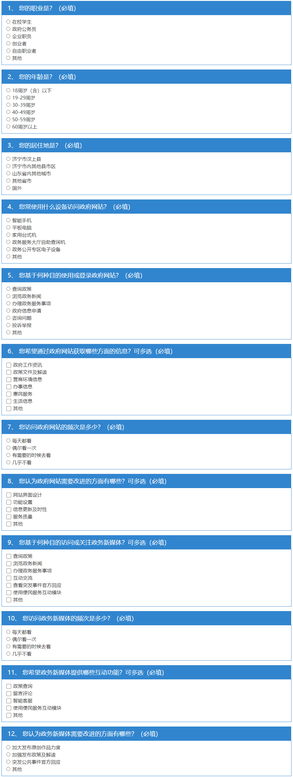 【已結束】汶上縣政府網站和政務新媒體問卷調查