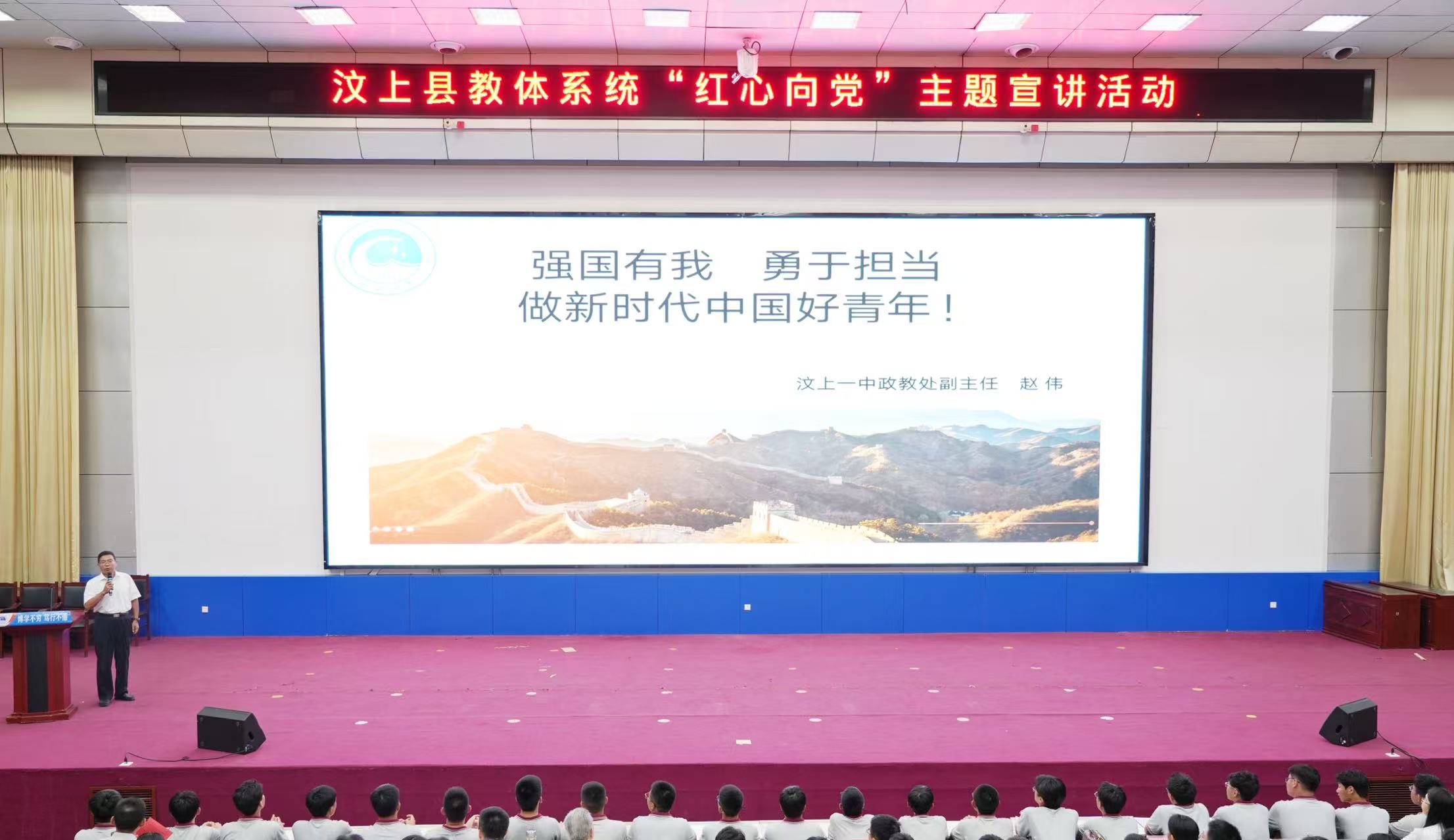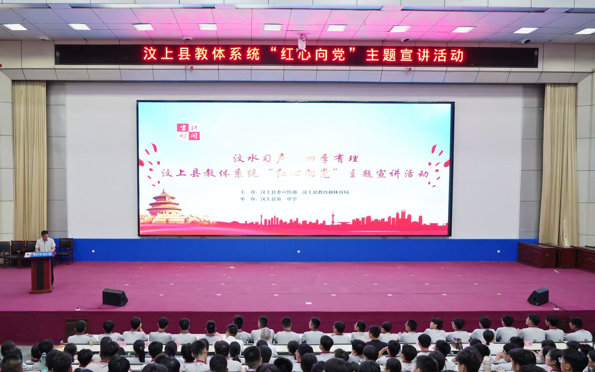 為紀(jì)念中國(guó)人民抗日戰(zhàn)爭(zhēng)暨世界反法西斯戰(zhàn)爭(zhēng)勝利80周年,厚植青少年愛黨愛國(guó)情懷,8月28日晚,汶上縣教體系統(tǒng)“紅心向黨”主題宣講活動(dòng)在汶上一中報(bào)告廳舉行。縣委宣傳部、縣教體局有關(guān)負(fù)責(zé)同志,與近千名師生代表共同參與,在思想的碰撞與精神的共鳴中,譜寫出一曲新時(shí)代青春向黨的壯麗樂(lè)章。
