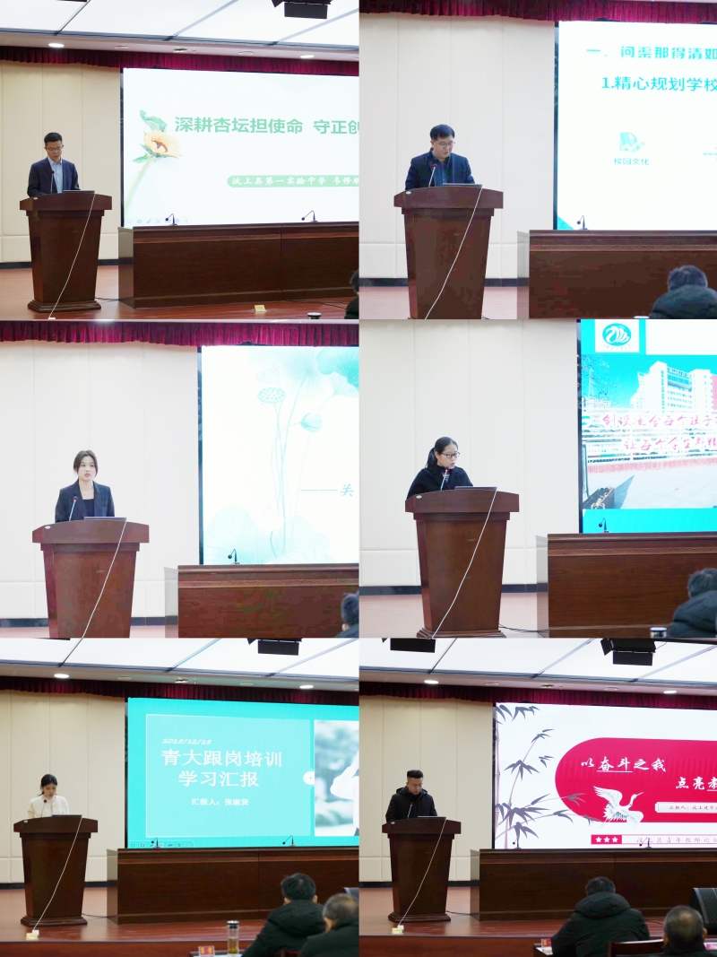會上,來自五所學校的六位跟崗教師代表依次發言,結合在青島大學教育集團的所學所感分享了深刻體會。第一實驗中學韋修明副校長以《深耕杏壇擔使命 守正創新育新人》為題,借鑒青島經驗,介紹了通過打造“師生發展共同體”、推行“三式課堂”教學改革和構建“五維”評價體系推動學校高質量發展的路徑;第二實驗中學李啟鋒副校長圍繞《取勢青大優教經驗,賦能本土教育提質》主題,分享了“尋差距、明方向、重行動”的反思,并從特色校園文化、管理制度完善、教師專業發展和創新人才培養等方面提出了本土化教育發展思路。第五實驗中學潘冬瑾老師聚焦教學能力提升,介紹了將德育細化融入課堂、深度使用作文量表以及通過“四層反思法”優化教學設計的實踐;第二實驗中學馮夫莉老師以教師專業成長為主題,分享了通過精心備課、持續反思、堅持讀書寫作和觀摩多元課堂來實現教學能力提升的路徑;第三實驗中學張淑賢老師介紹了更新教育理念、探索學科融合與AI賦能課堂、深化團隊教研和踐行終身學習的教學相長經驗;建華中學季元浩老師則分享了從教學到育人的理念升華,提出以“點燃思維、深耕課堂”推動教學改革,展現了青年教師務實創新的奮斗姿態。